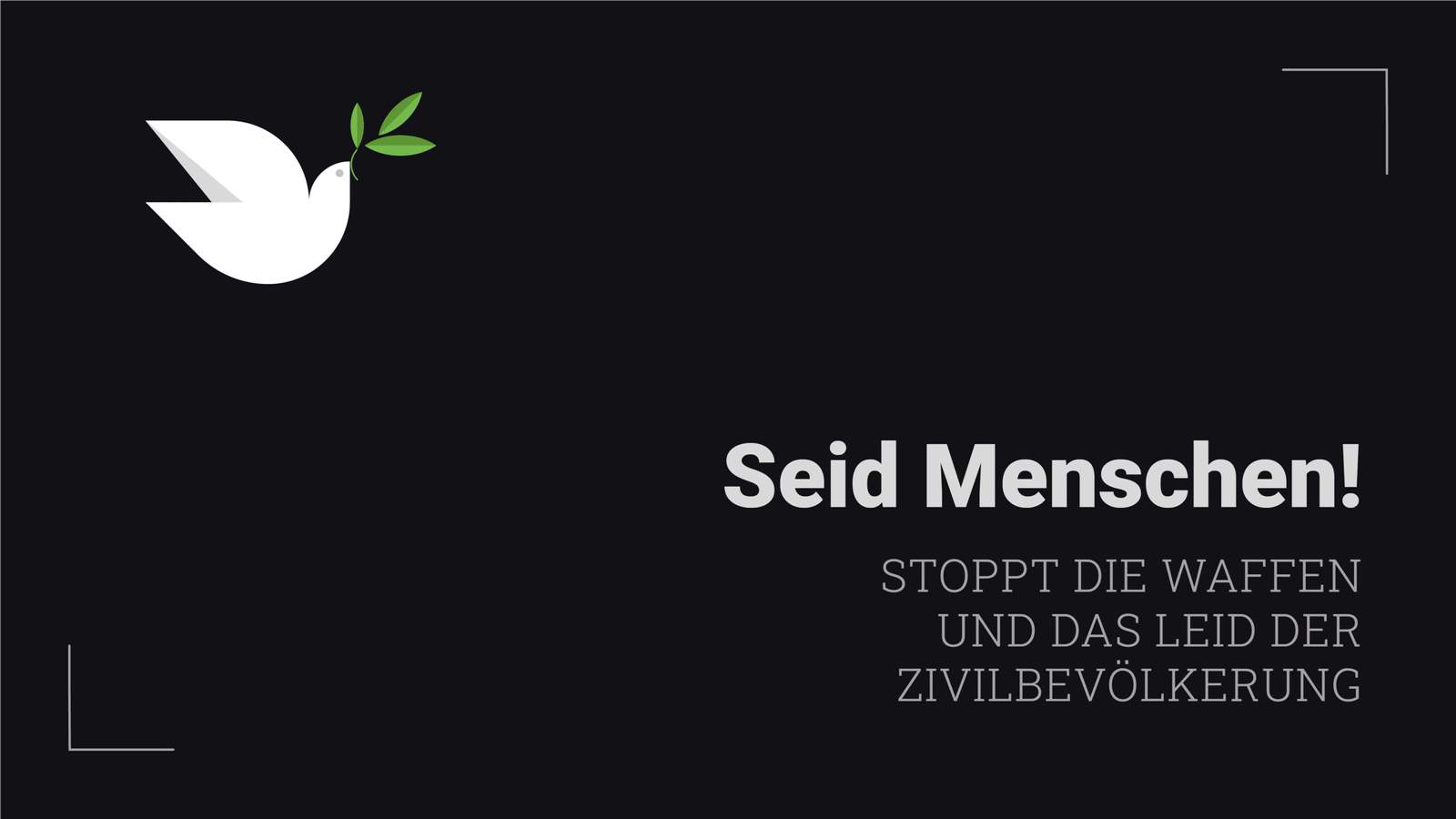 Stoppt die Waffen und das Leid der Zivilbevölkerung. Seid Menschen.